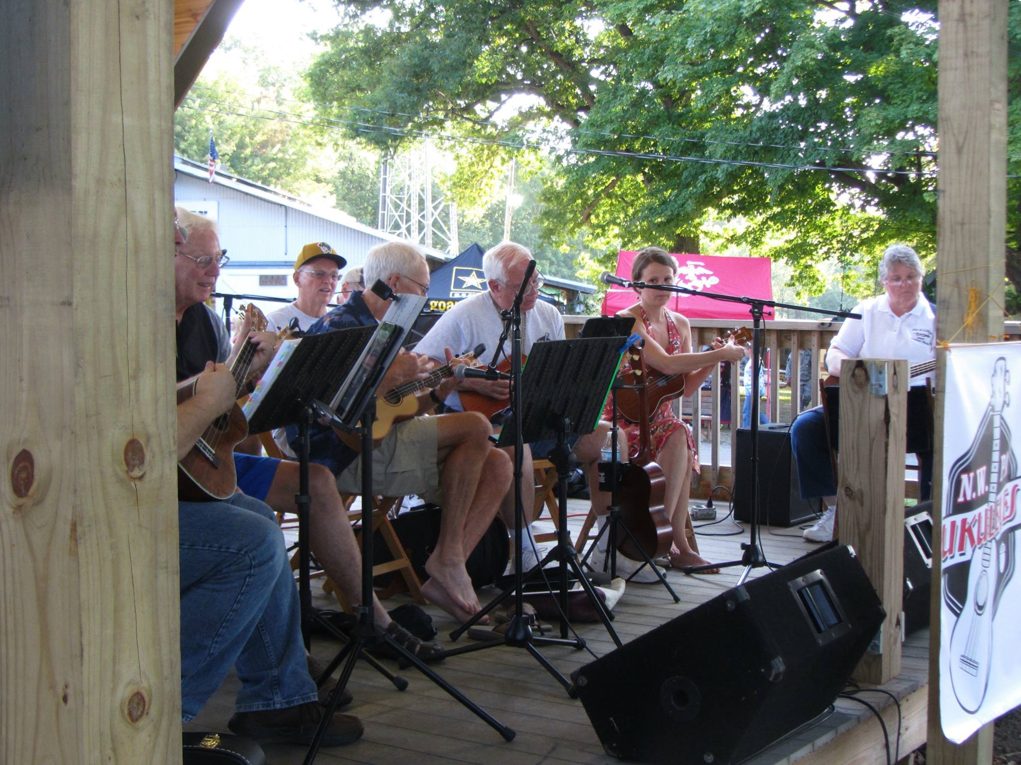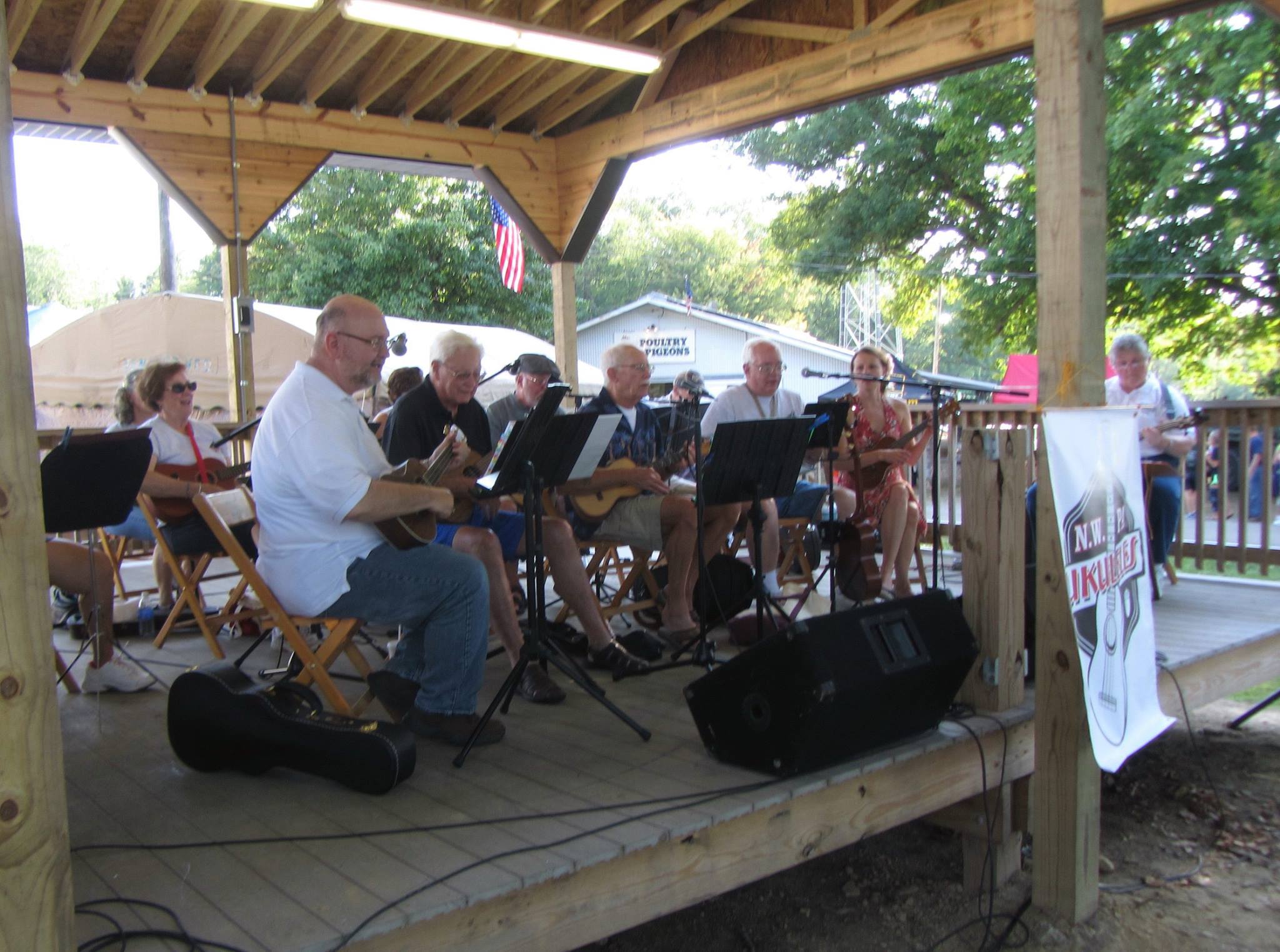 This group of NWPA Ukers performed on the free acts stage at the Crawford County Fair on August 19. Â Under the leadership of aPaul Dean, Michael Shea and Barry Dalaba they did a fine job of entertaining the fair goers. Â Thank you Don Olah, Terry Olah, Lynda Bucklew, Walt Spiller, Tom Anderson, Jean Wisniewski, Kathleen Gosciewski, Bob Johansen, and SaraJo Lowe.