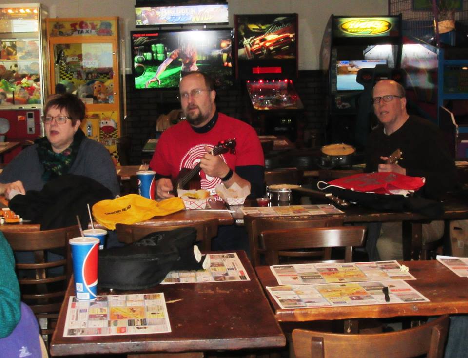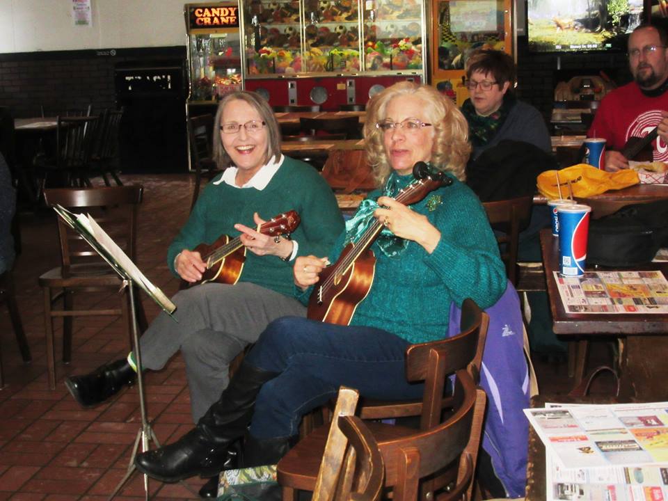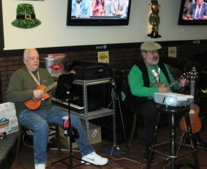 You just can’t keep some ukulele players down! Amazingly enough fourteen players and a few others showed up to play some Irish tunes in spite of temperatures in the teens and the major snow storm that we are currently experiencing. We did quit early so that those who had a long distance to travel wouldn’t be on the road too late at night. We did get three or four inches of new snow in the two hours that we played.