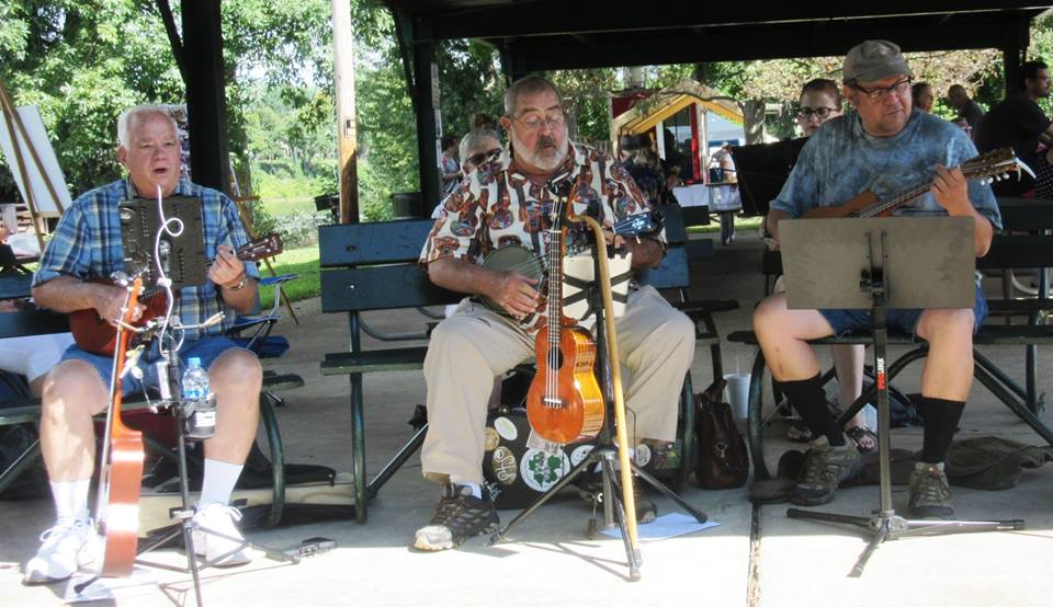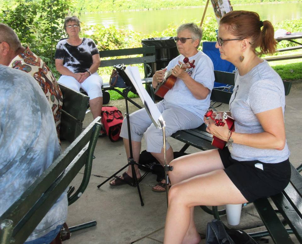 NWPA Ukuleles also played the Allegheny River Fest in Crescent Park in Warren, PA on Sept. 15. We were small but determined group that day. Beautiful setting on the Allegheny River great job by the ukes.